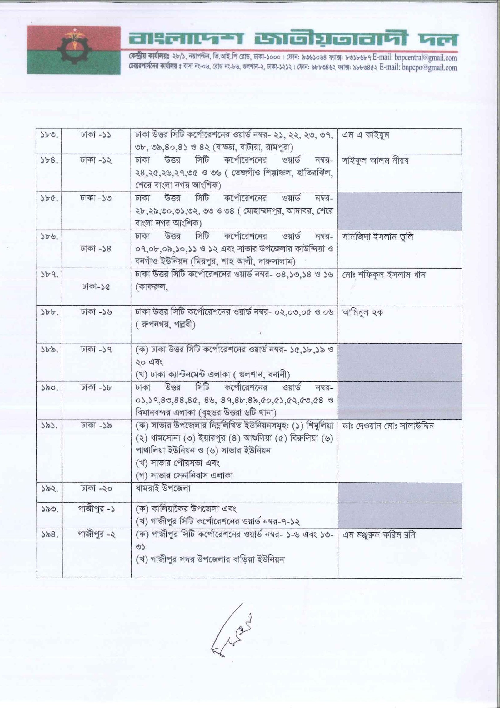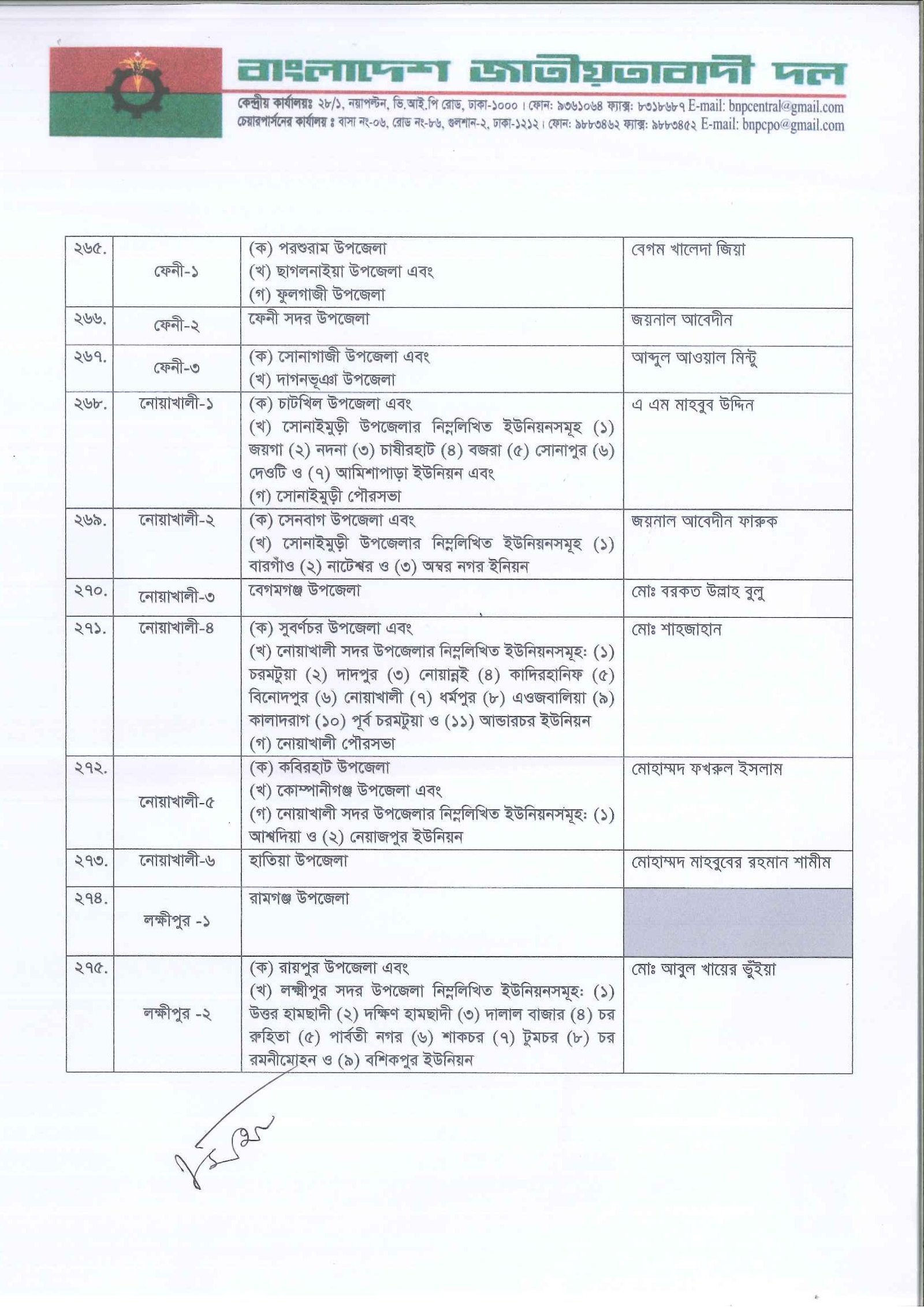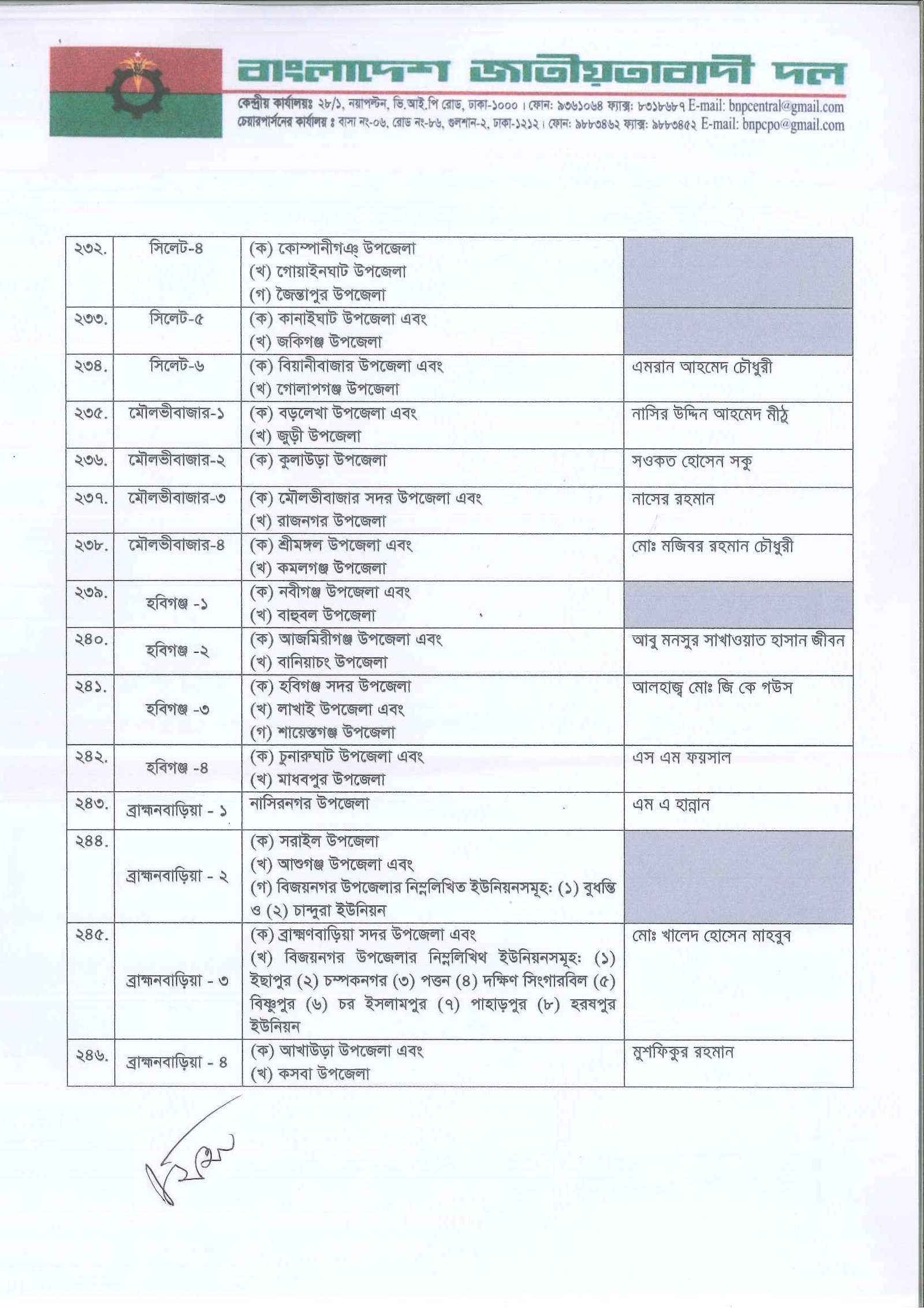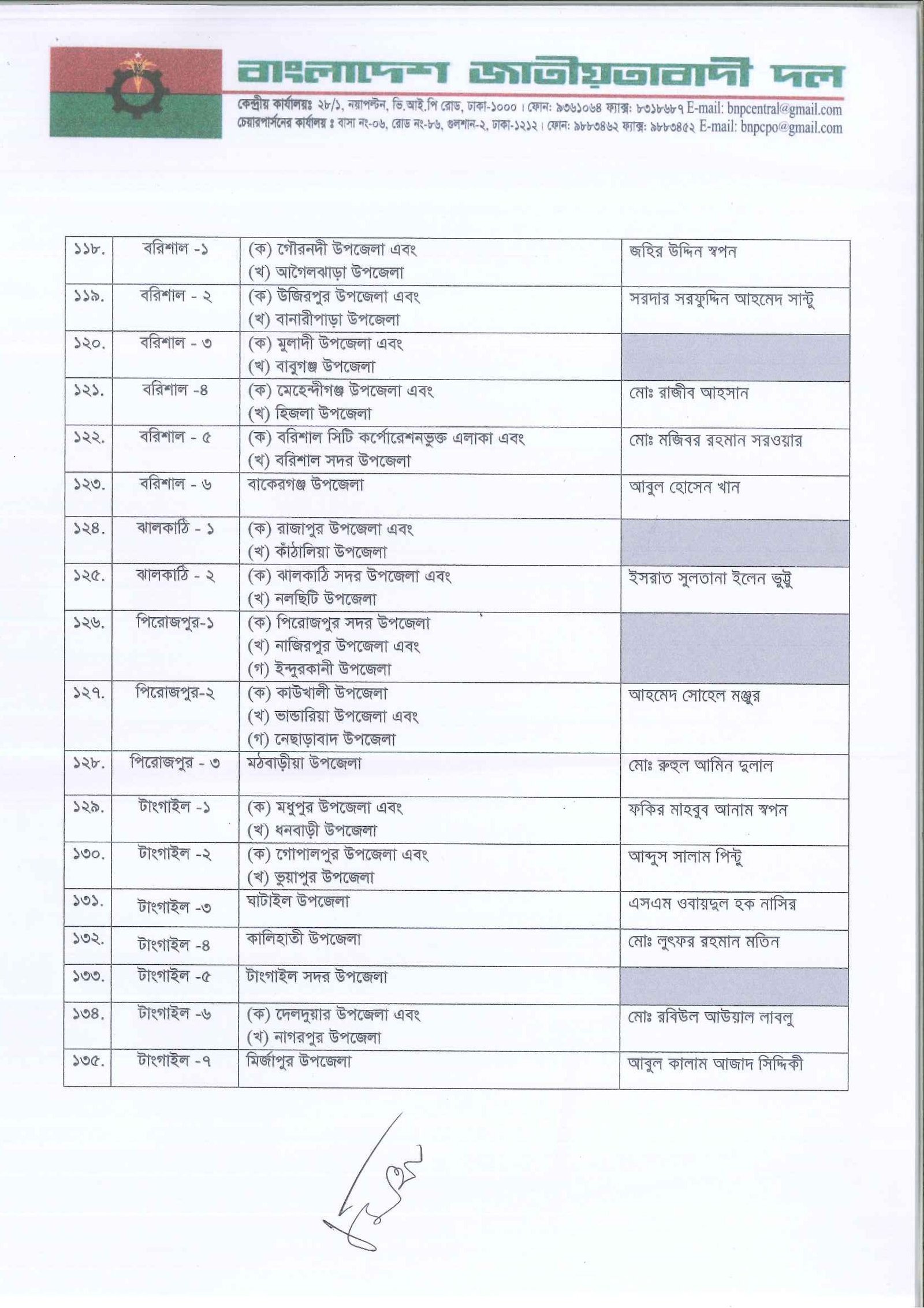 আগামী ত্রয়োদশ জাতীয় সংসদ নির্বাচনের জন্য দলের একক প্রার্থী নির্ধারণ করেছে বিএনপি। তালিকা যাচাই-বাছাই ও আলোচনা শেষে প্রাথমিকভাবে ২৩৭ আসনে প্রার্থী দিচ্ছে দলটি। এর মধ্যে সাবেক প্রধানমন্ত্রী ও বিএনপি চেয়ারপারসন খালেদা জিয়া তিনটি আসনে প্রতিদ্বন্দ্বিতা করবেন। এগুলো হলো দিনাজপুর-৩, বগুড়া-৭ ও ফেনী-১। সোমবার (৩ নভেম্বর) সন্ধ্যায় গুলশানের চেয়ারপারসনের কার্যালয়ে প্রার্থী তালিকা ঘোষণা করেন দলের মহাসচিব মির্জা ফখরুল ইসলাম আলমগীর।
