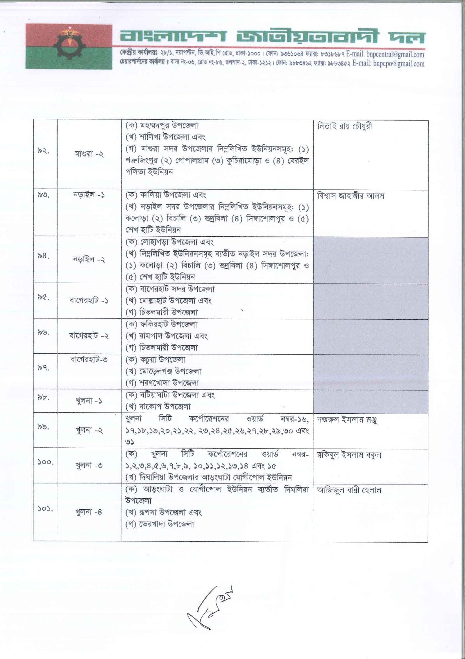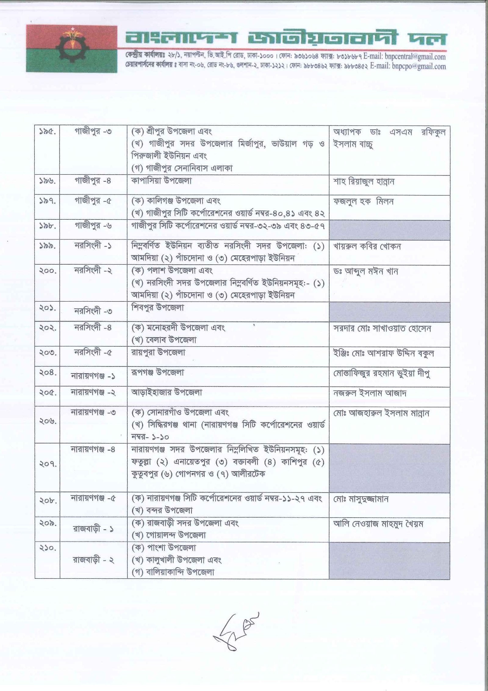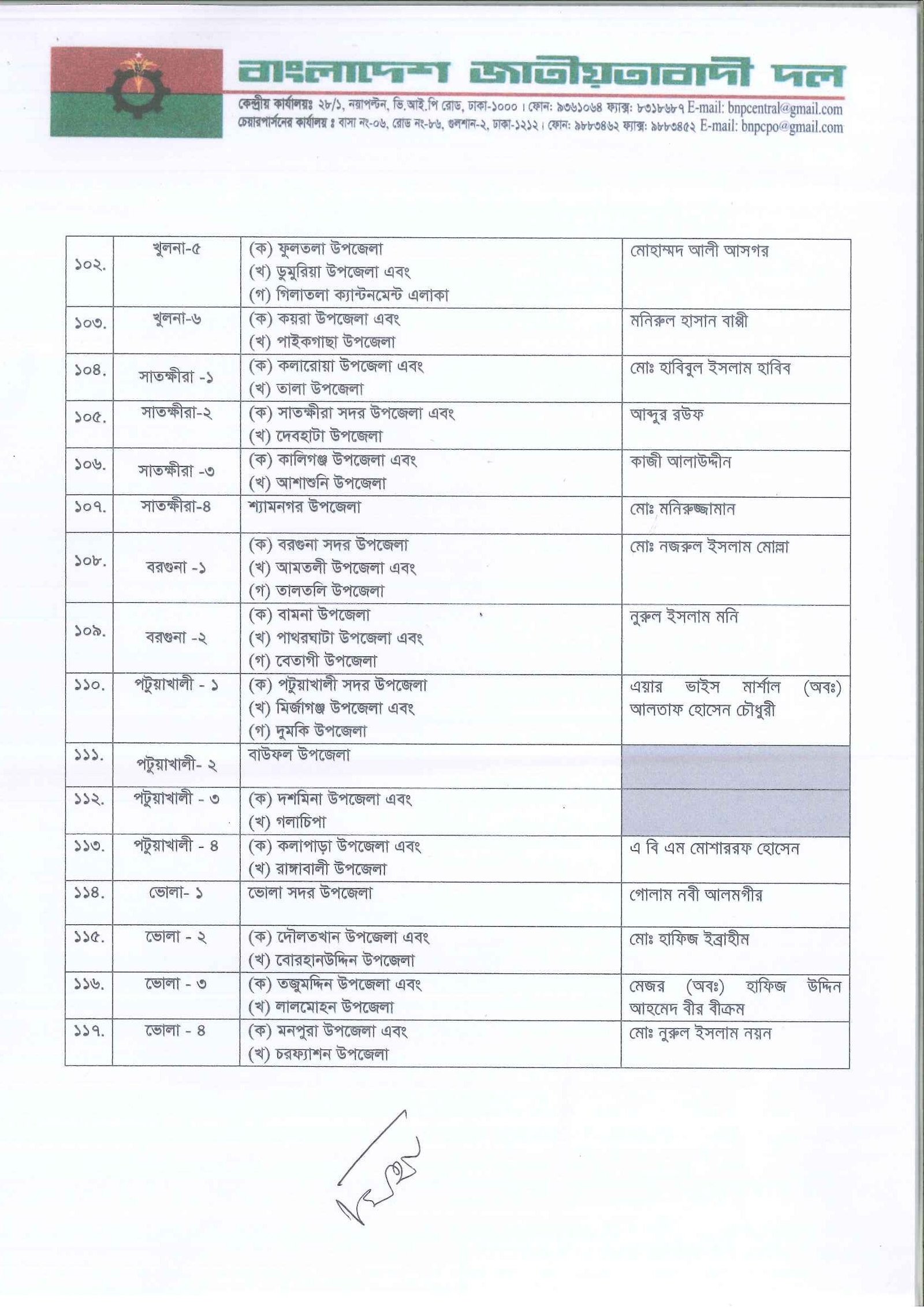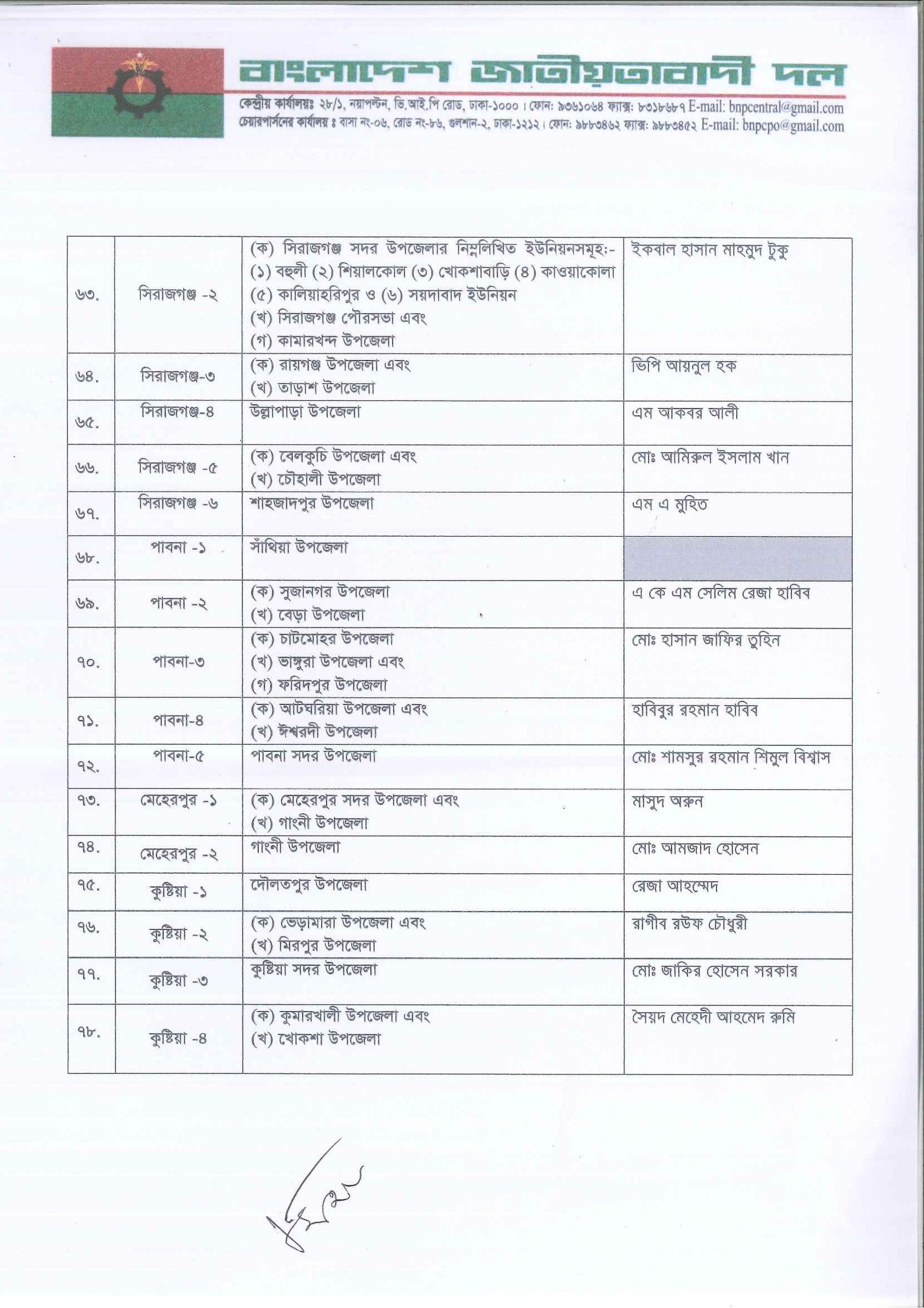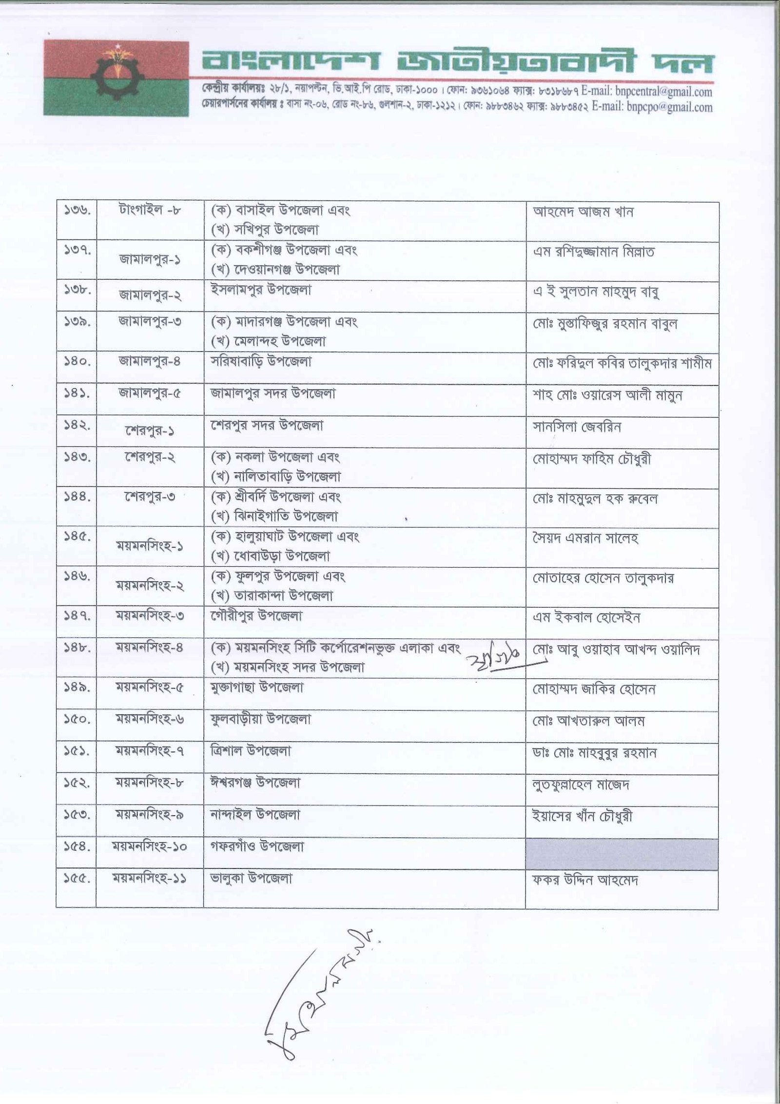 আগামী ত্রয়োদশ জাতীয় সংসদ নির্বাচনের জন্য দলের একক প্রার্থী নির্ধারণ করেছে বিএনপি। তালিকা যাচাই-বাছাই ও আলোচনা শেষে প্রাথমিকভাবে ২৩৭ আসনে প্রার্থী দিচ্ছে দলটি। এর মধ্যে সাবেক প্রধানমন্ত্রী ও বিএনপি চেয়ারপারসন খালেদা জিয়া তিনটি আসনে প্রতিদ্বন্দ্বিতা করবেন। এগুলো হলো দিনাজপুর-৩, বগুড়া-৭ ও ফেনী-১। সোমবার (৩ নভেম্বর) সন্ধ্যায় গুলশানের চেয়ারপারসনের কার্যালয়ে প্রার্থী তালিকা ঘোষণা করেন দলের মহাসচিব মির্জা ফখরুল ইসলাম আলমগীর।